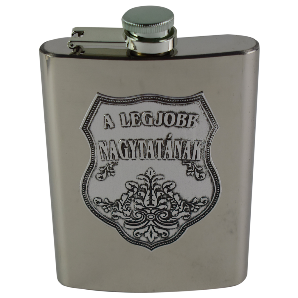 Plosca respectiva realizata din inox este un cadou ideal pe care il puteti darui bunicului dumneavoastra. deoarece plosca respectiva este decorata cu un abtibild tip metal pe care este inscriptionat in limba magiara mesajul „A legjobb nagytatanak” (Pentru
