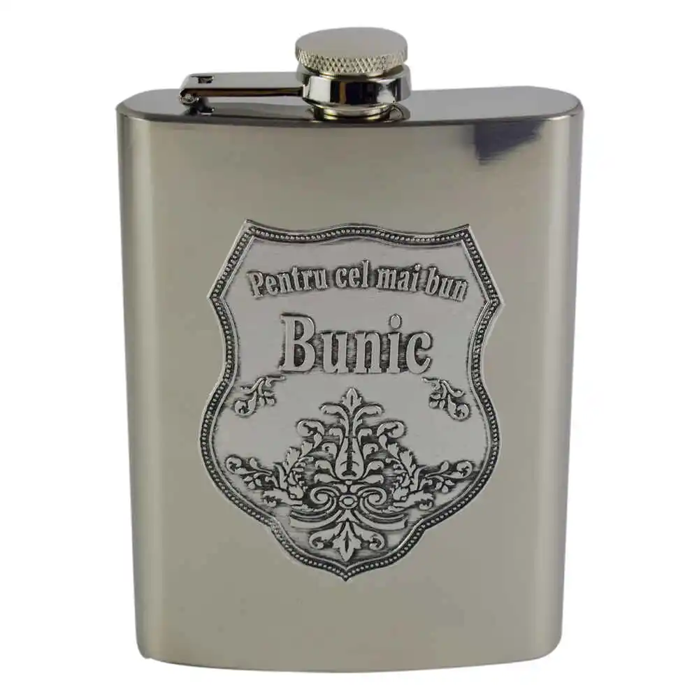 Plosca respectiva realizata din inox este un cadou ideal pe care il puteti darui bunicului dumneavoastra. deoarece plosca respectiva este decorata cu un abtibild tip metal pe care este inscriptionat mesajul „Pentru cel mai bun bunic”.