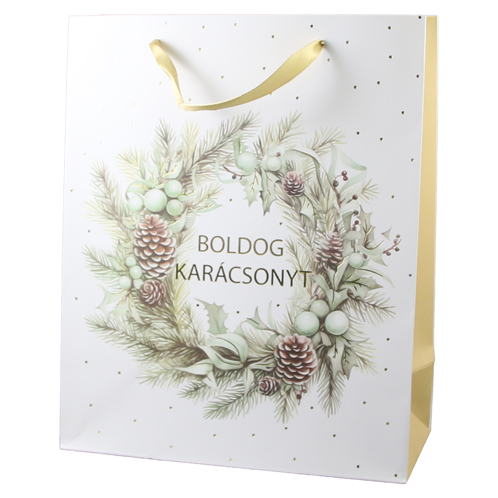 Punga cadou Craciun 26×32 CM, „Boldog Karacsonyt”, Coronita