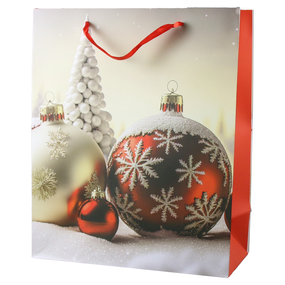 Punga cadou Craciun 26×32 CM, Globuri de brad rosii
