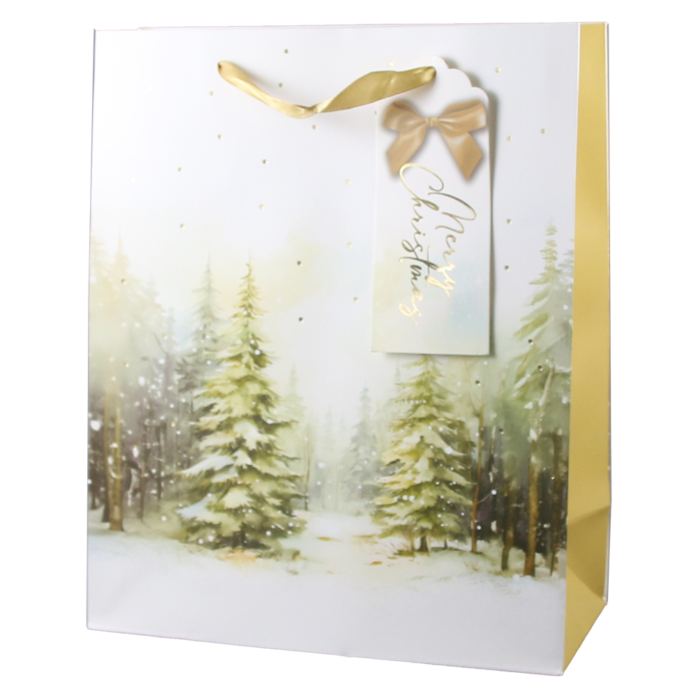 Punga cadou Craciun 26×32 CM, „Merry Christmas”, cu eticheta, padure