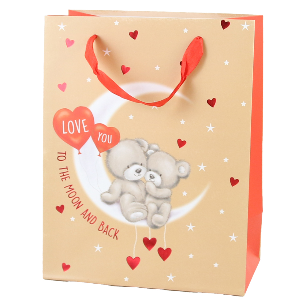 Punga cadou din hartie 18×23 CM, „Love you to the moon…”, Ursuleti