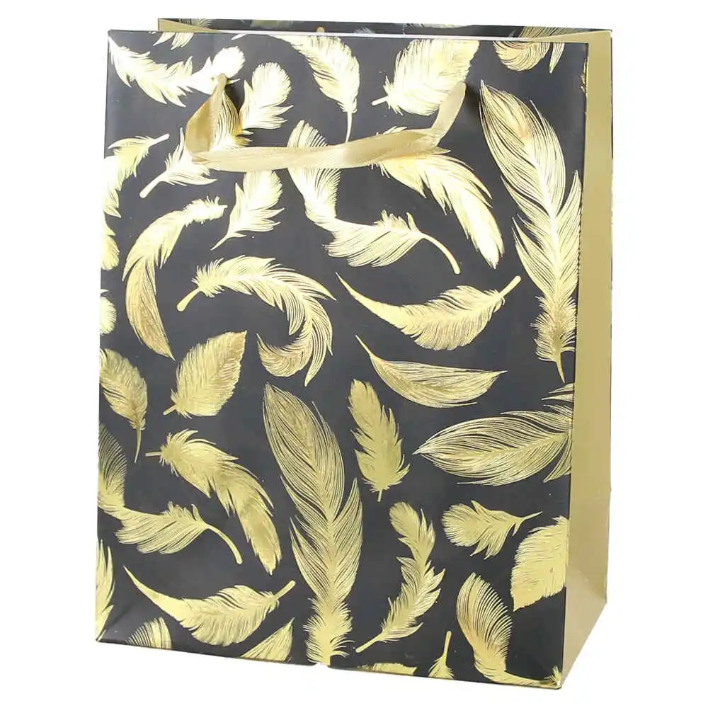 Punga cadou din hartie 18×23 CM, Pene aurii