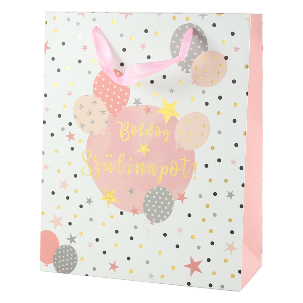 Punga cadou din hartie 26×32 CM – „Boldog Szulinapot”, baloane aurii