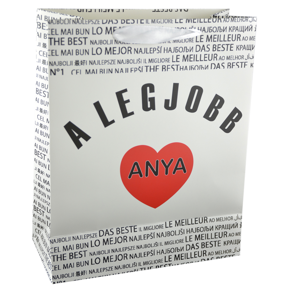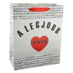 Aceasta punga pentru cadouri realizata din hartie rezistenta este ideala pentru a o surprinde pe mama dumneavoasta cu diferite cadouri. Punga inscriptionata cu textul „A legjobb anya/The best mom”. si decorata cu inimioara.va insufla un sentiment de iubi