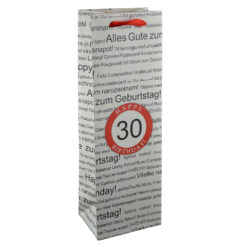 Acesta punga de cadou pentru bauturi realizata din hartie rezistenta este ideala pentru a-i suprinde cu o sticla de vin sau alte bauturi aniversare pe barbatii care inplinesc varsta de 30 de ani. Inscriptionata cu cifra „30”. respectiva punga va insufla u