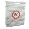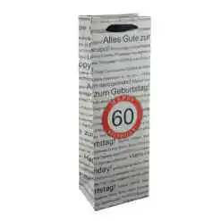 Acesta punga de cadou pentru bauturi realizata din hartie rezistenti este ideala pentru a-i suprinde cu o sticla de vin sau alte bauturi aniversare pe barbatii care inplinesc varsta de 60 de ani. Inscriptionata cu cifra „60”. respectiva punga va insufla u