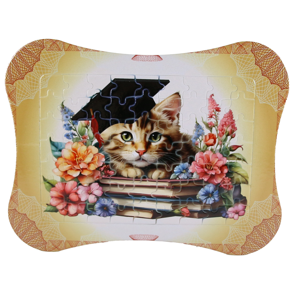 Puzzle in rama cu suport 24×19 CM, Pisica cu toca