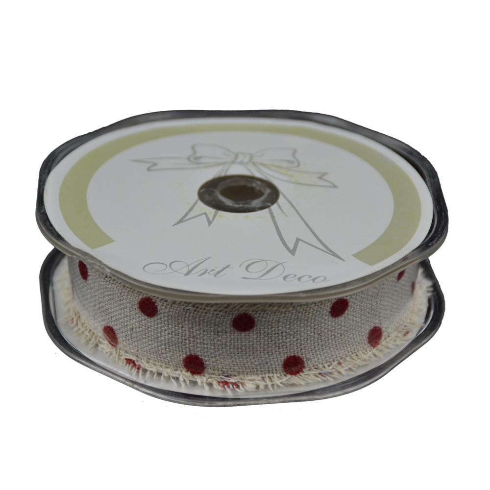 Rola panglica din panza de iuta, 25 mm x 20 m, Crem cu buline rosii