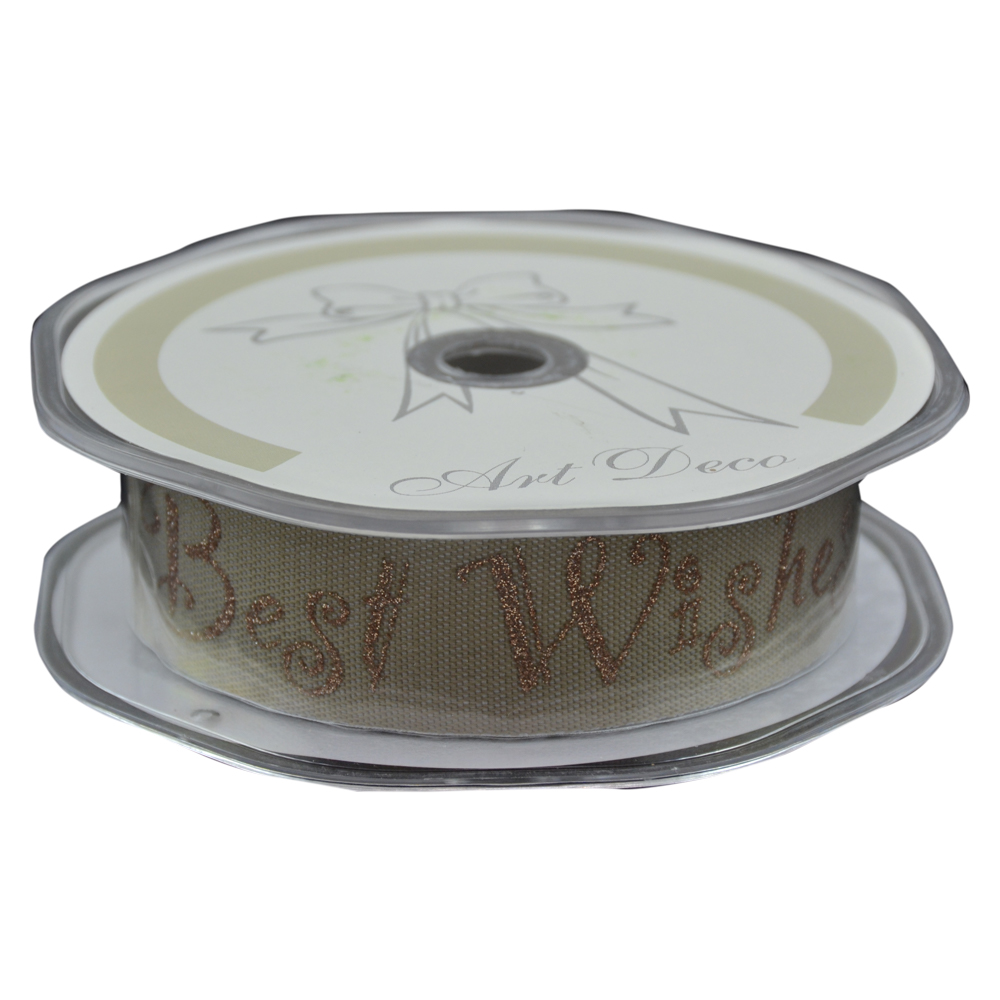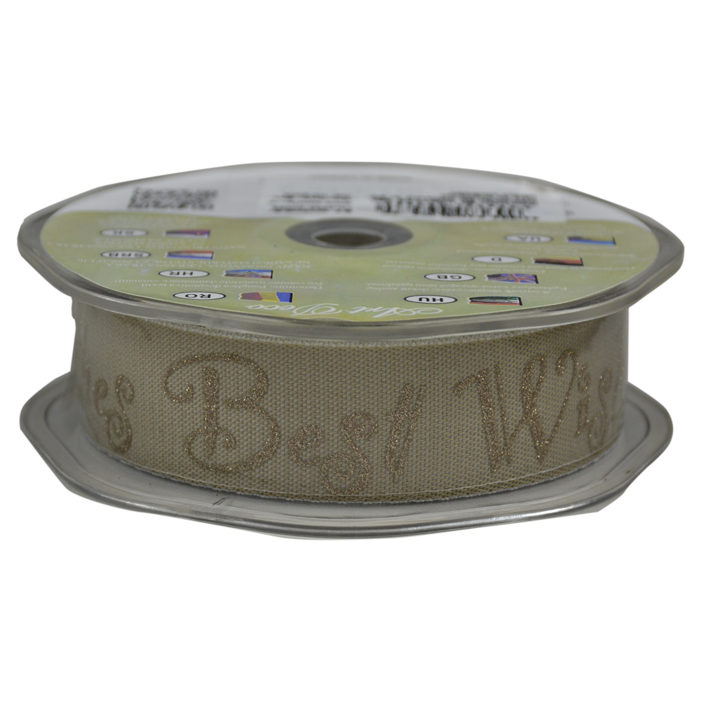 Rola panglica din textil, „Best Wishes”, 25 mm x 10 m, Crem