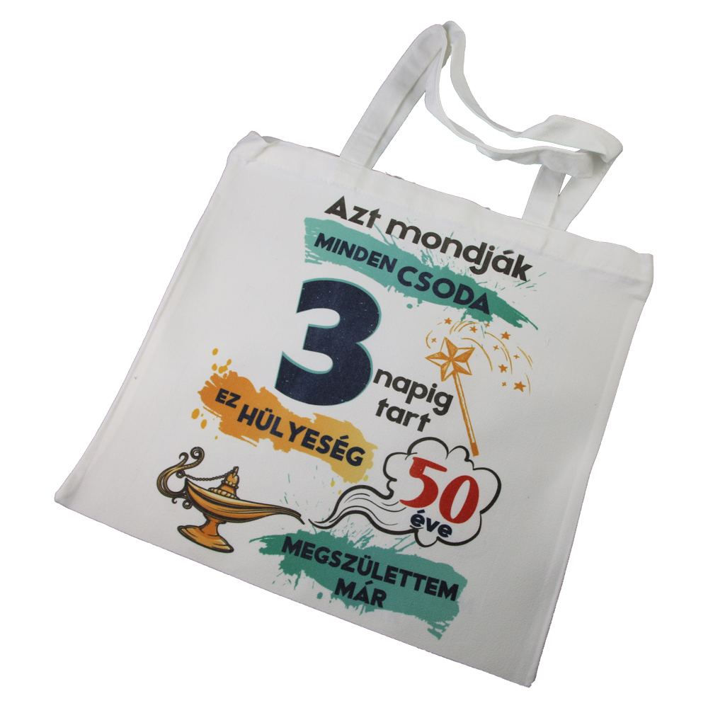 Sacosa textil „50 eve megszulettem mar”, 40×40 CM