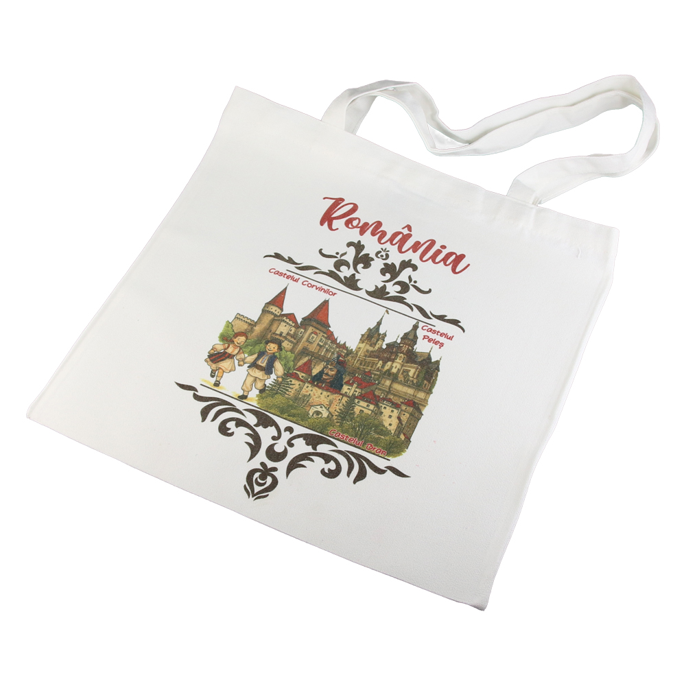 Sacosa textil „Romania”, 40×40 CM, Castele