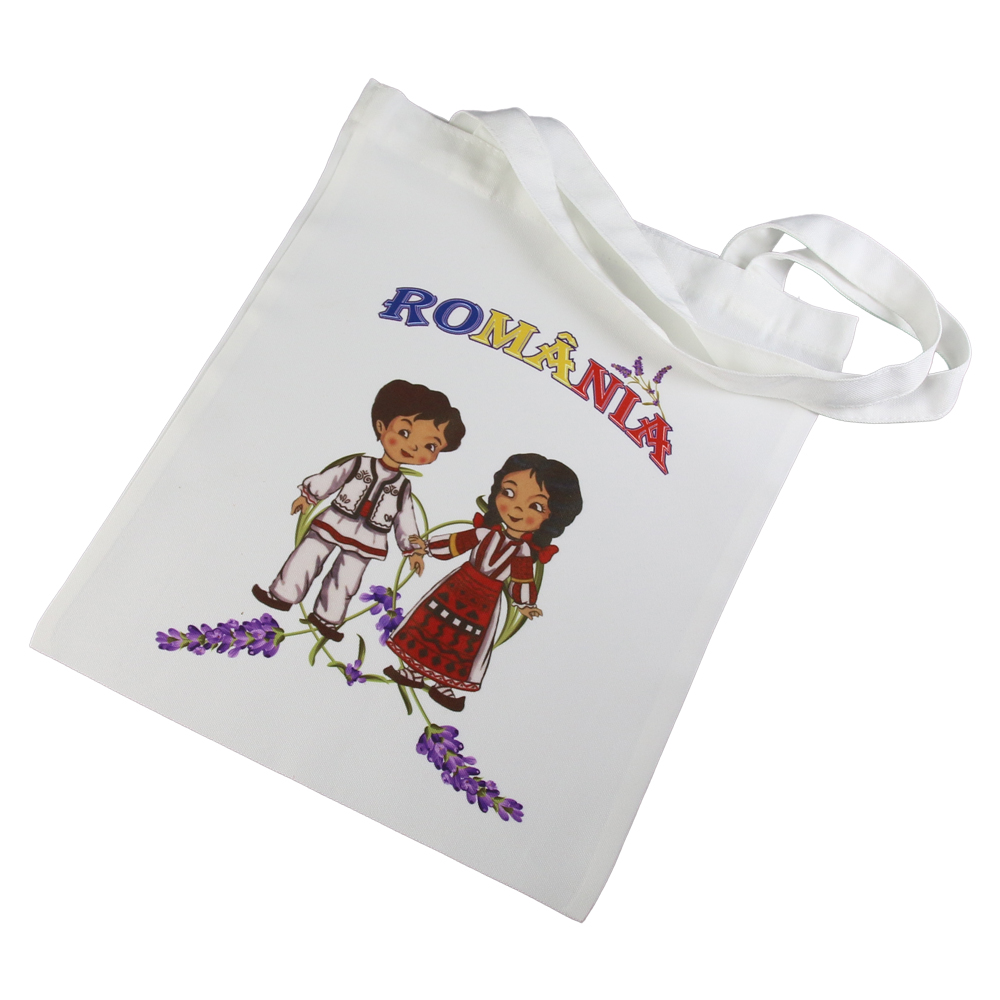 Sacosa textil „Romania”, Copii cu lavanda 29×35 CM