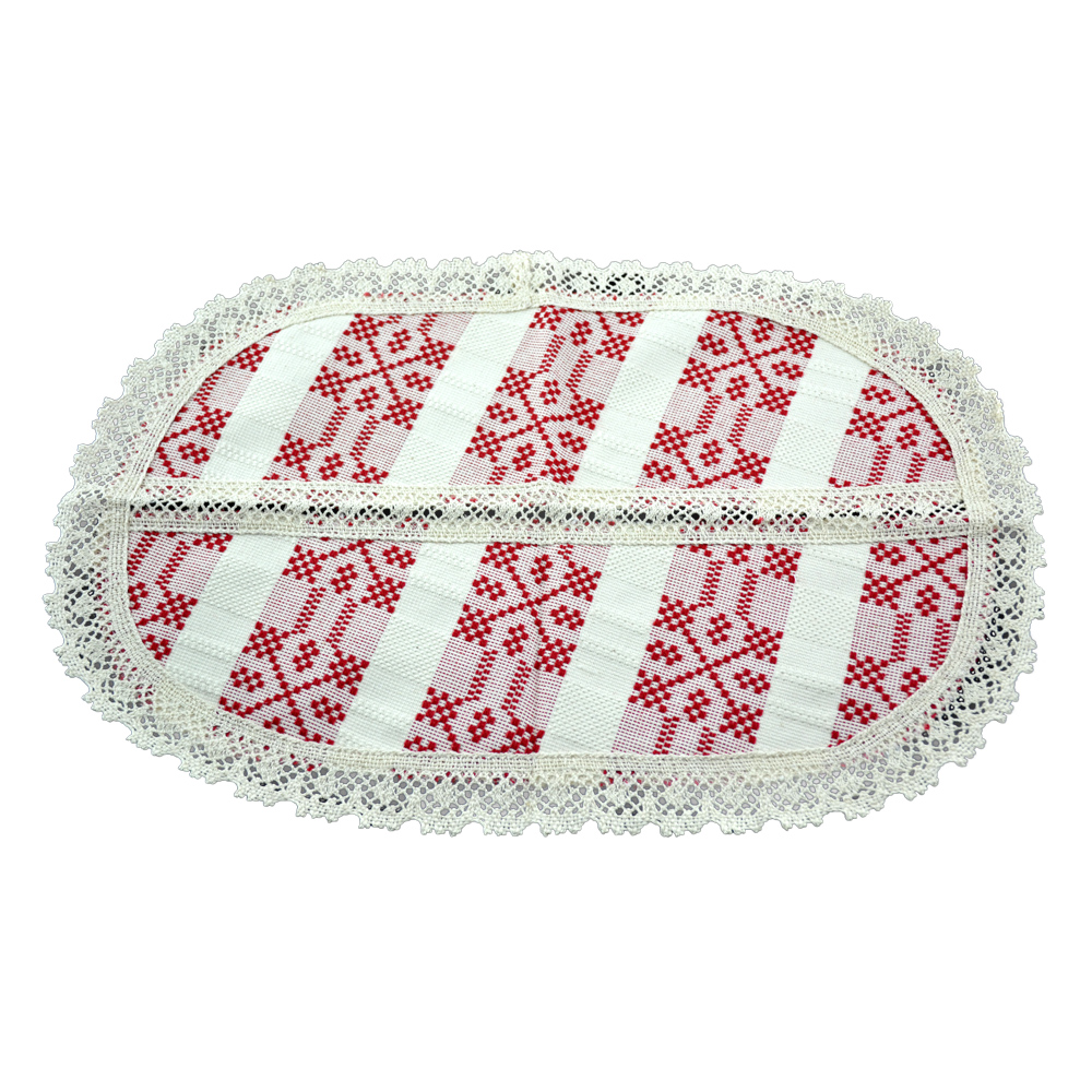 Servetel artizanat oval 45×25 CM Crem/Rosu, 80 % bbc, 20 % acril