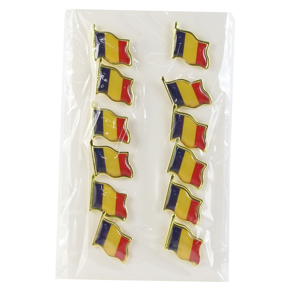 Set 12 insigne rotunde cu steagul Romaniei, 2 CM, din metal