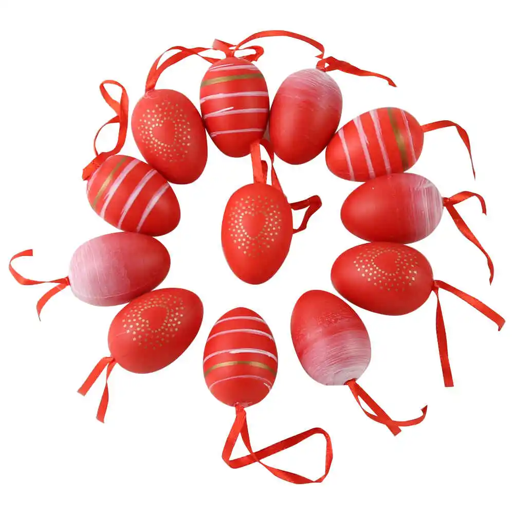 Set 12 oua din plastic 3×4 cm, rosii cu dungi si inimioare