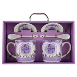 Set 2 cani cu farfurii si lingurite din ceramica Lavender fluturasi