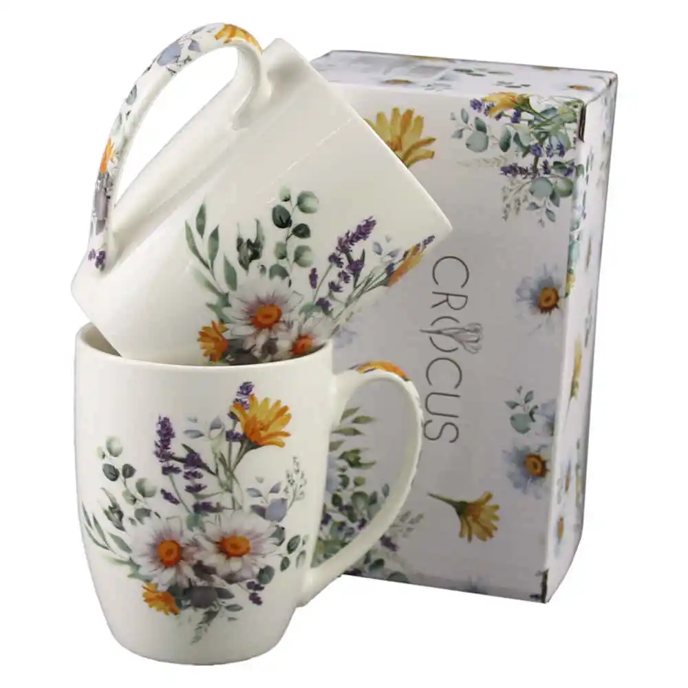 Set 2 cani din portelan 350 ml „Basket of Flowers-Daisy”, in cutie decorativa