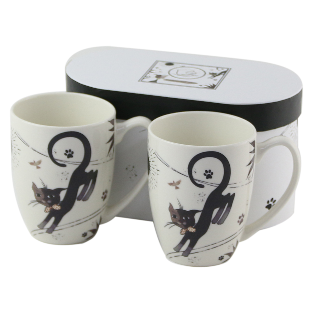 Set 2 cani din portelan 380 ml, „Charming Cats”, in cutie decorativa