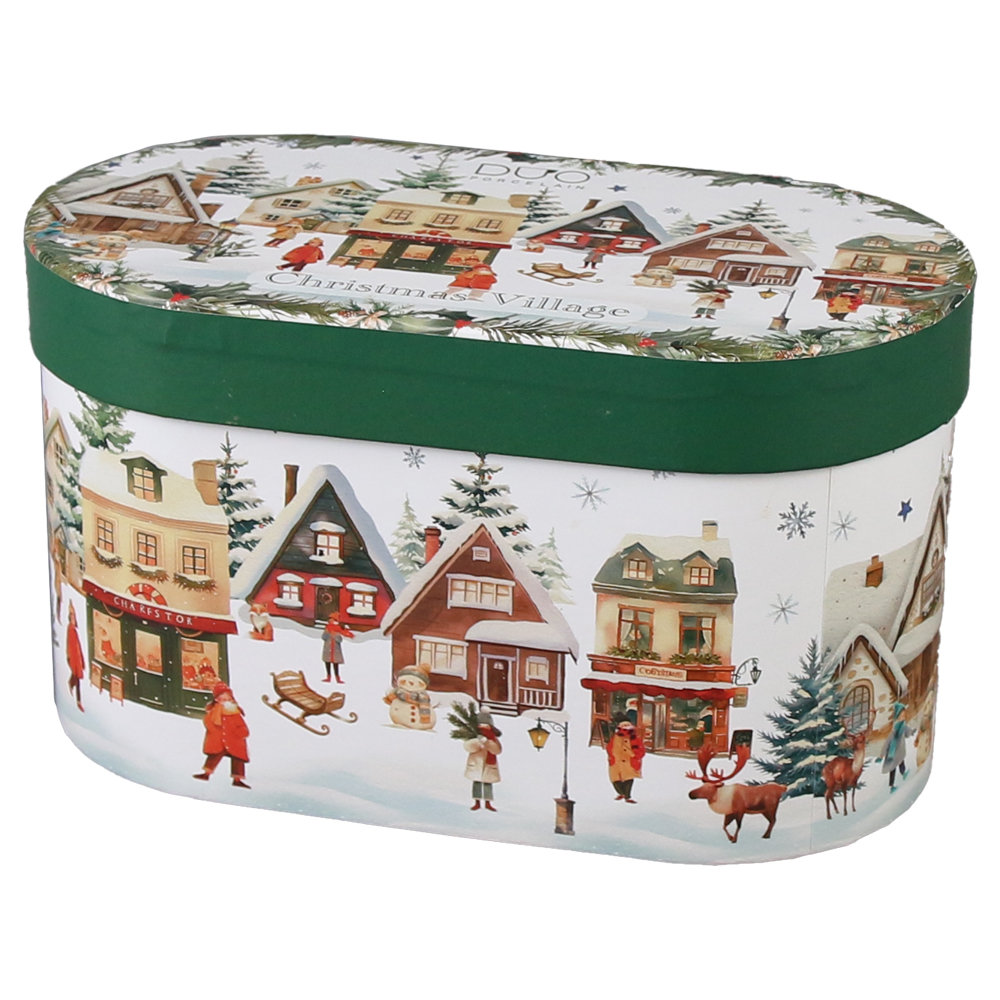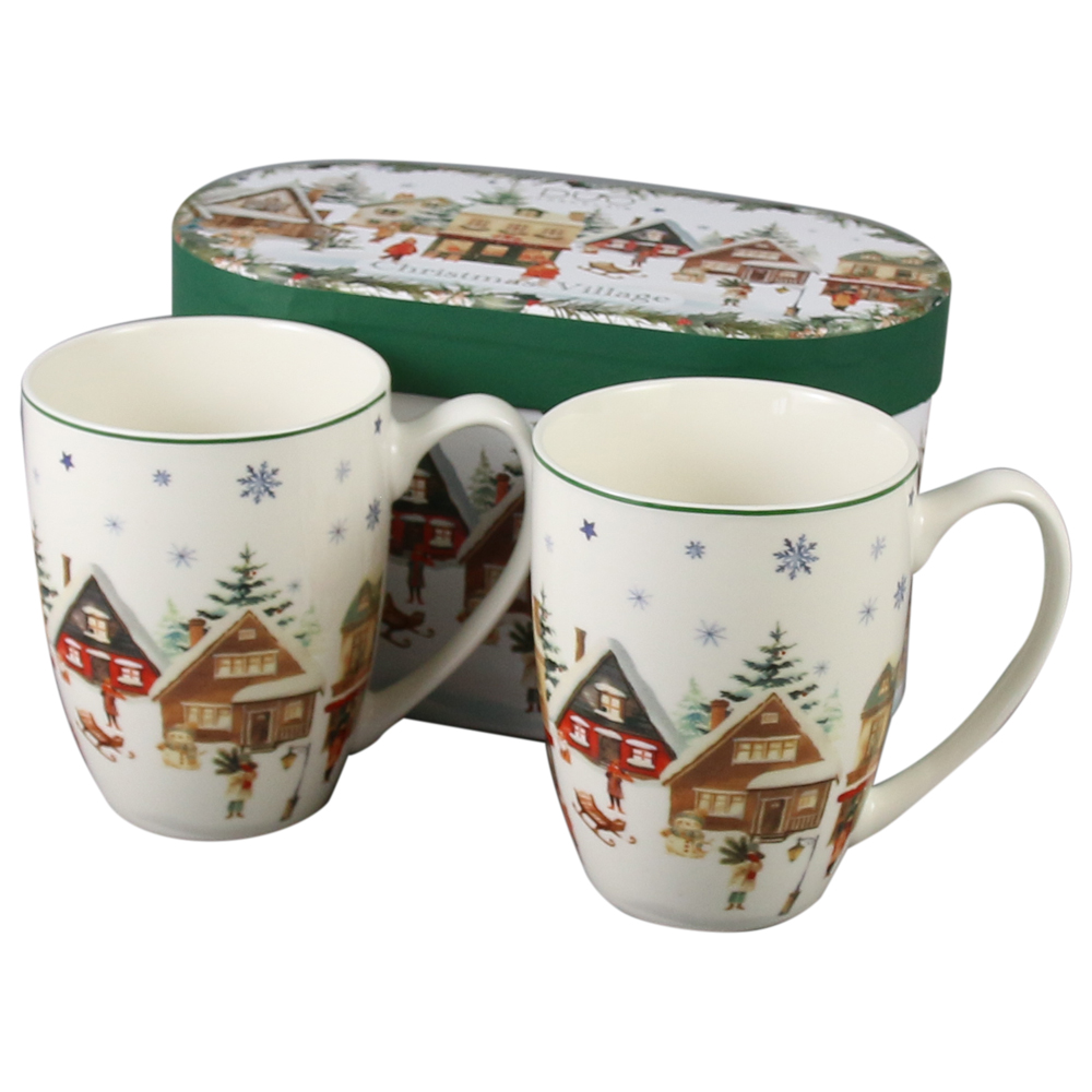 Set 2 cani din portelan, Christmas Village, 360 ml, in cutie decorativa, Sat de Craciun