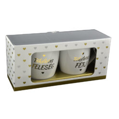 Acest set este format din doua cani realizate din ceramica. in cutie. ideal pentru casatoriti pentru a savura bautura preferata impreuna. canile fiind inscriptionate. una pentru sot. cealalta pentru sotie. facand astfel timpul petrecut impreuna si mai fru
