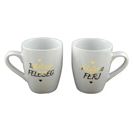 Acest set este format din doua cani realizate din ceramica. in cutie. ideal pentru casatoriti pentru a savura bautura preferata impreuna. canile fiind inscriptionate. una pentru sot. cealalta pentru sotie. facand astfel timpul petrecut impreuna si mai fru