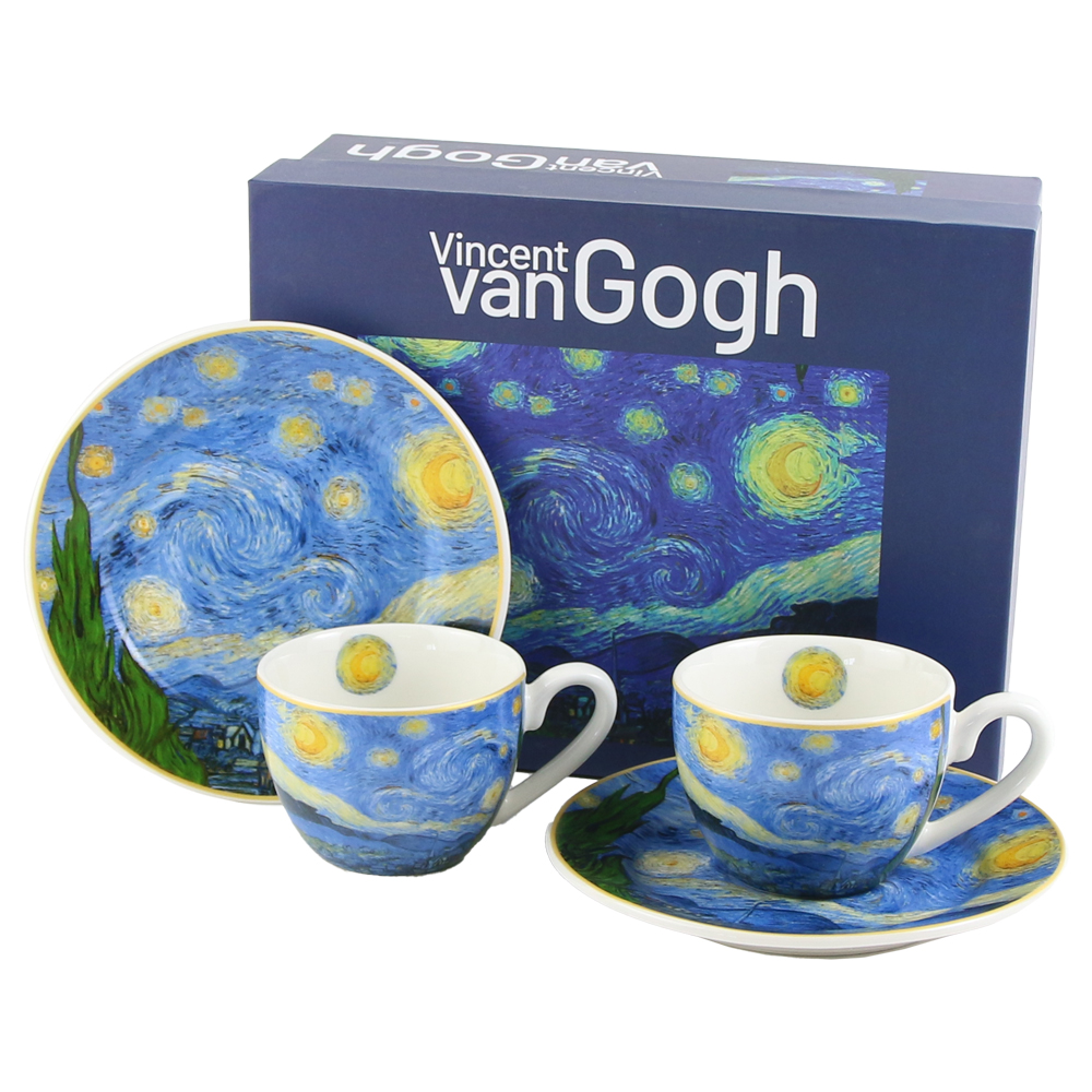 Set 2 cesti espresso cu farfurii, din portelan, 110 ml „Starry Night” de V. van Gogh, in cutie decorativa