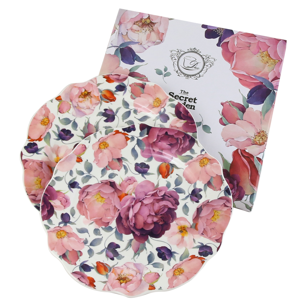 Set 2 farfurii desert „Spring Roses White”, 19 CM, in cutie decorativa