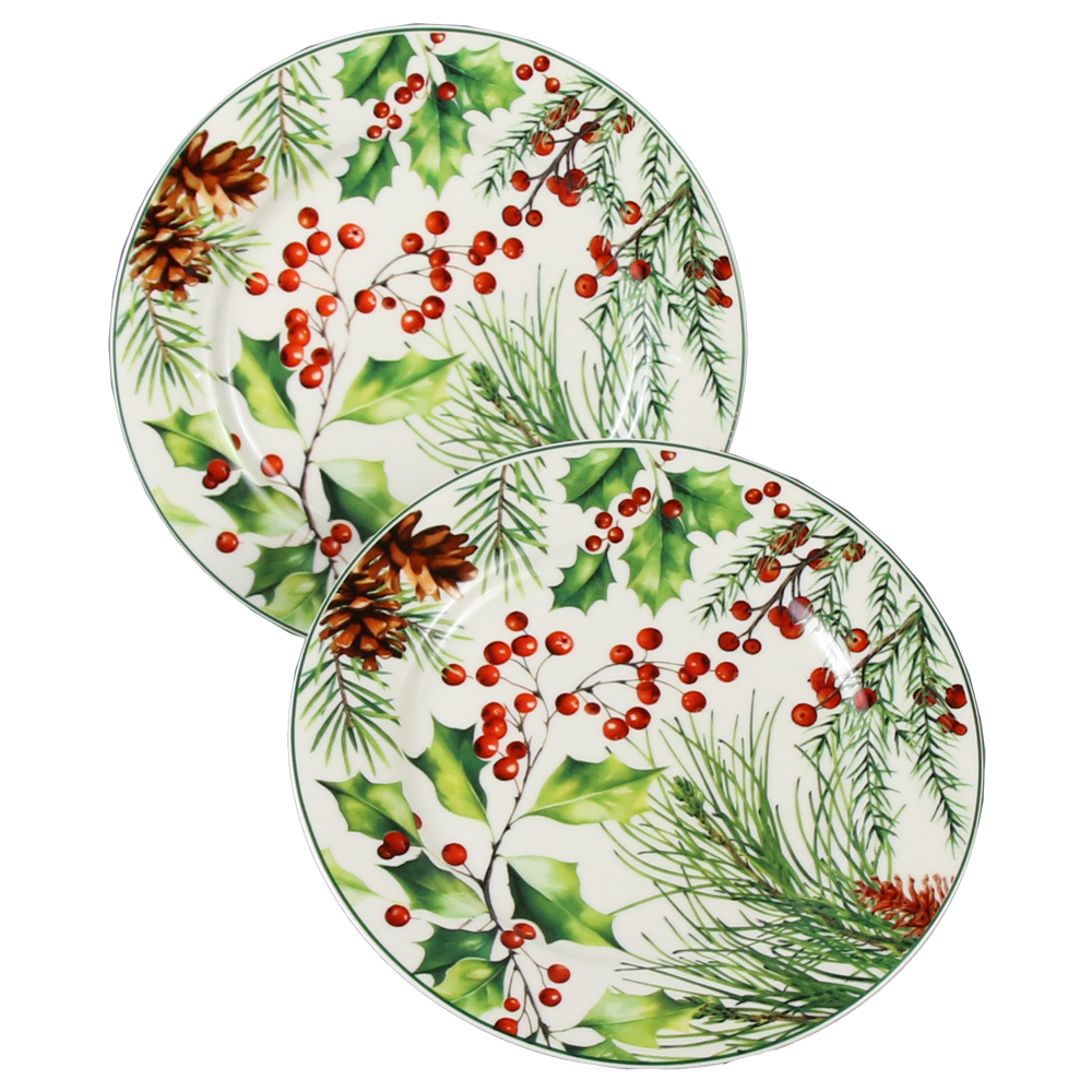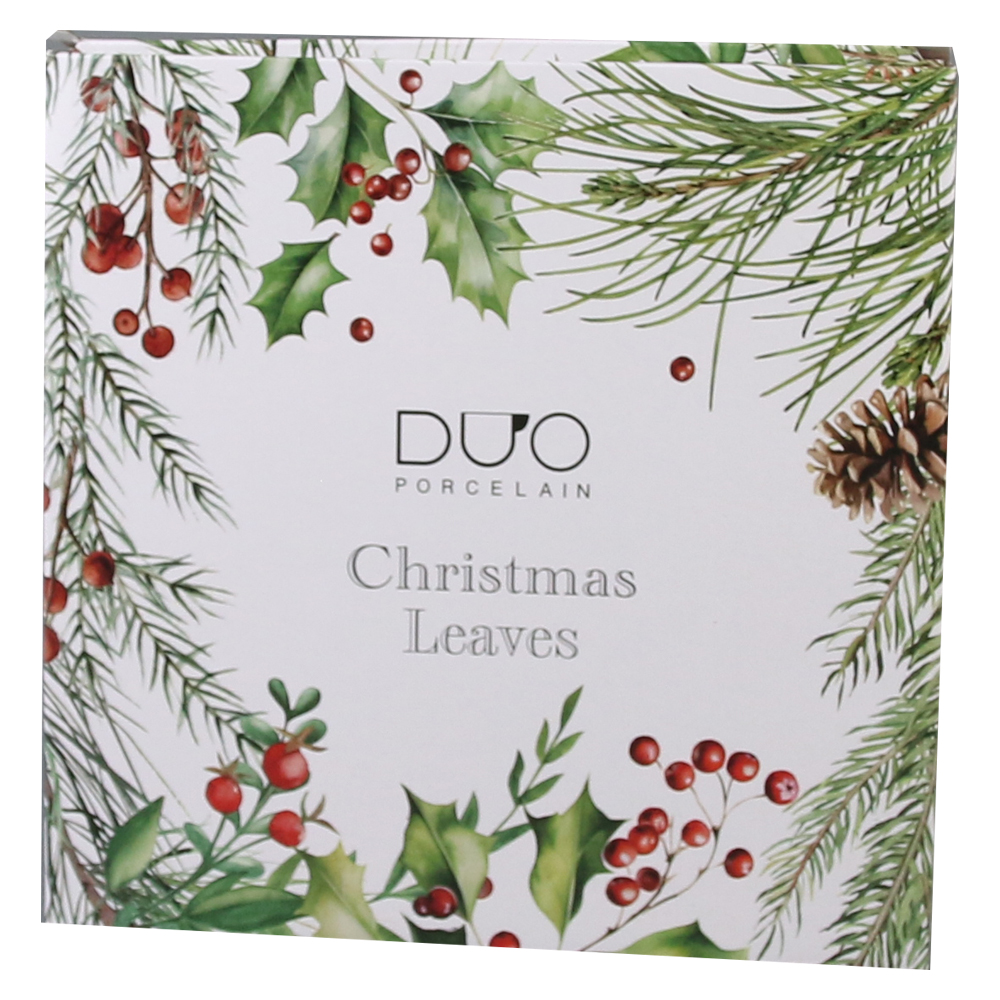 Set 2 farfurii din portelan 19 CM, Christmas Leaves, in cutie decorativa, Frunze de Craciun