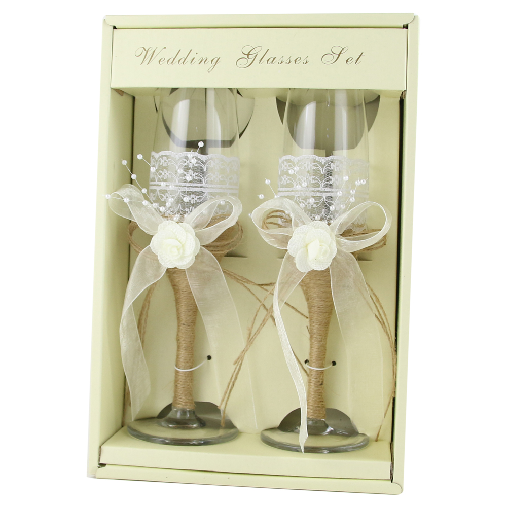 Set 2 pahare sampanie pentru Miri – Alb/natur