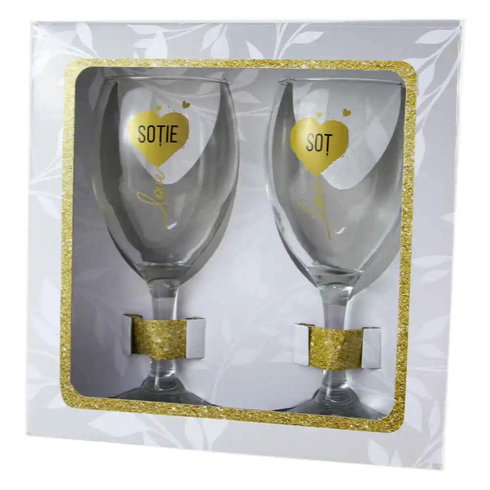 Set 2 pahare vin „Love – Sotie/Sot”, 220 ml, in cutie eleganta