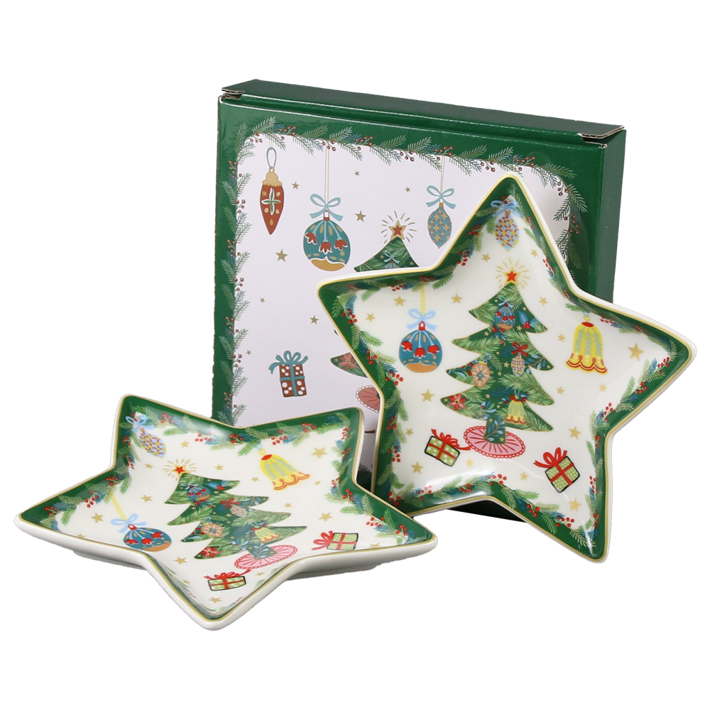 Set 2 platouri stea din portalan 15 CM, Around Christmas Tree, in cutie decorativa, Brad de Craciun