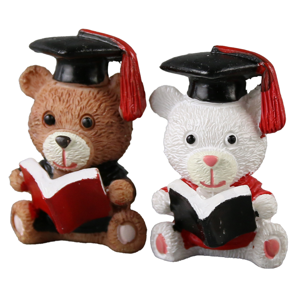 Set 2 ursuleti absolventi din rasina – maro si alb 3 x 4 cm