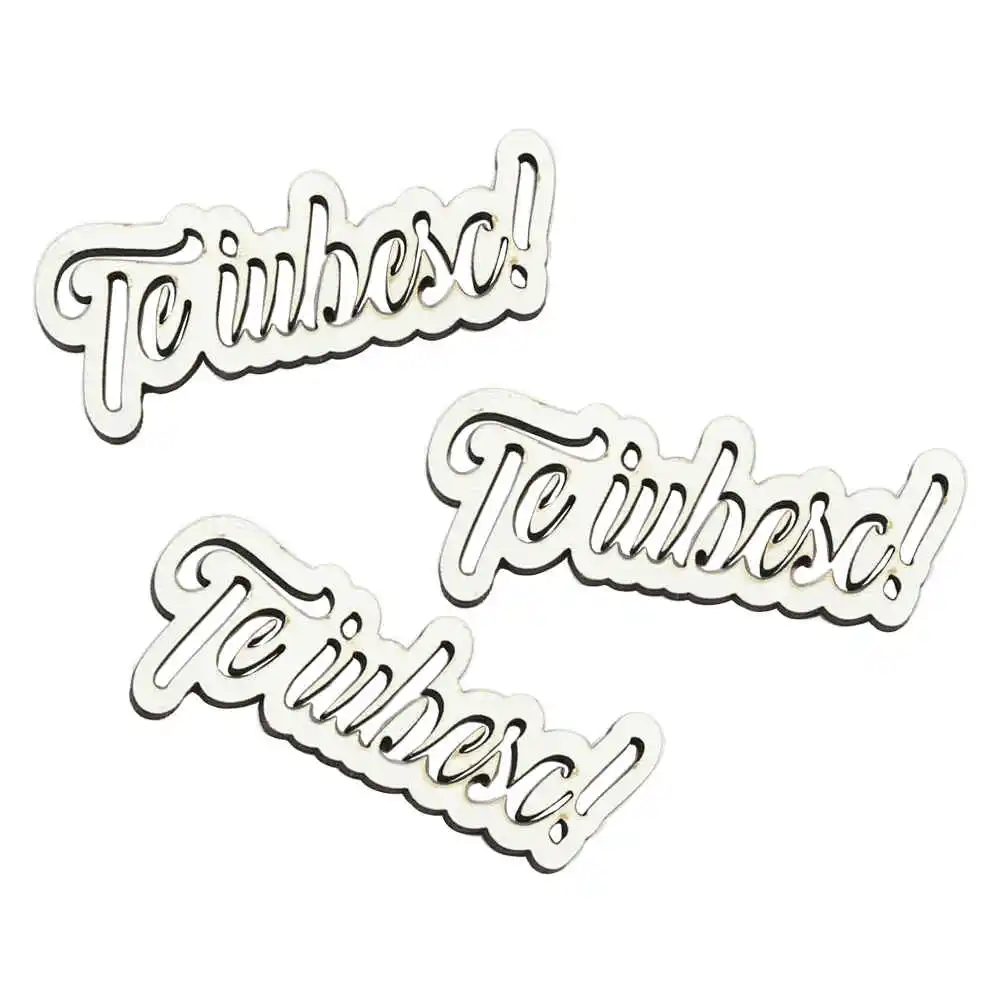 Set 3 decor craft din lemn „Te iubesc!” 8×3 CM