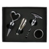 Set 4 accesorii vin in cutie, tirbuson, dop, antipicurator, inel din metal
