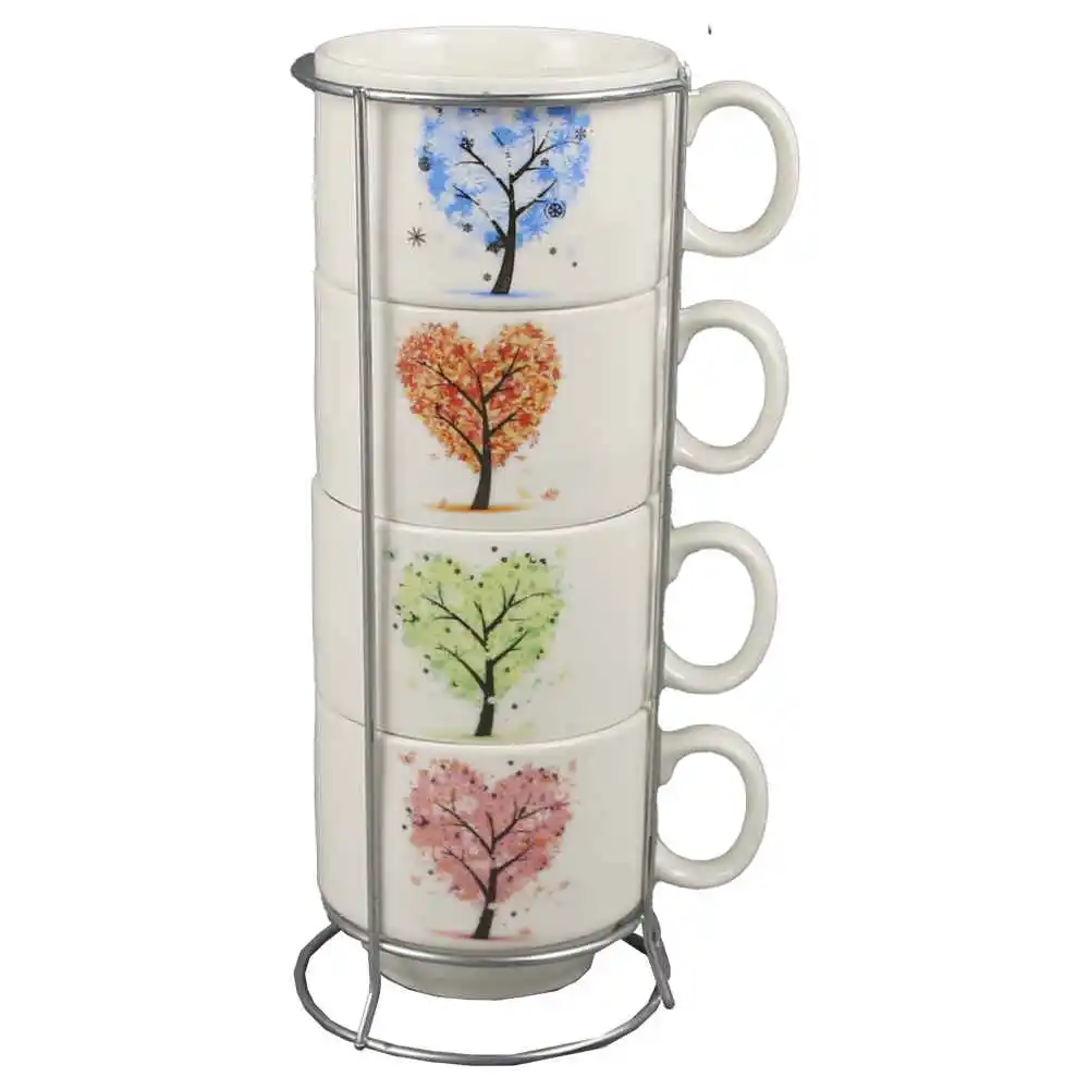 Set 4 cesti din ceramica cu suport metalic, 150 ml, Anotimpuri