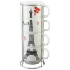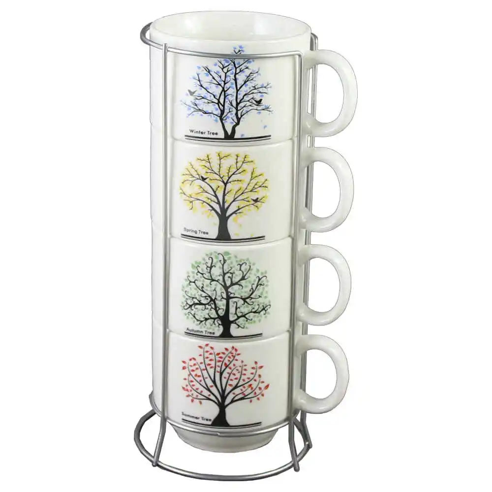 Set 4 cesti din ceramica cu suport metalic, 150 ml, Trees