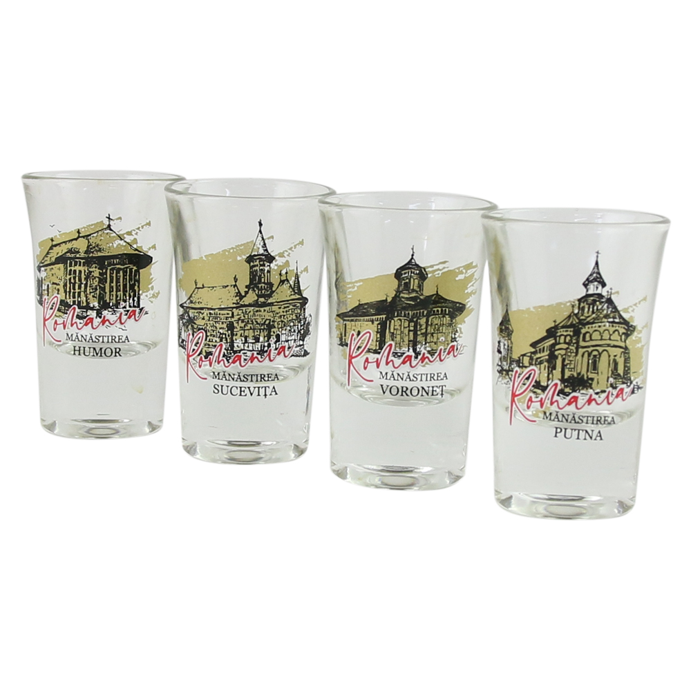 Set 4 pahare din sticla 35 ml, Romania – Manastiri