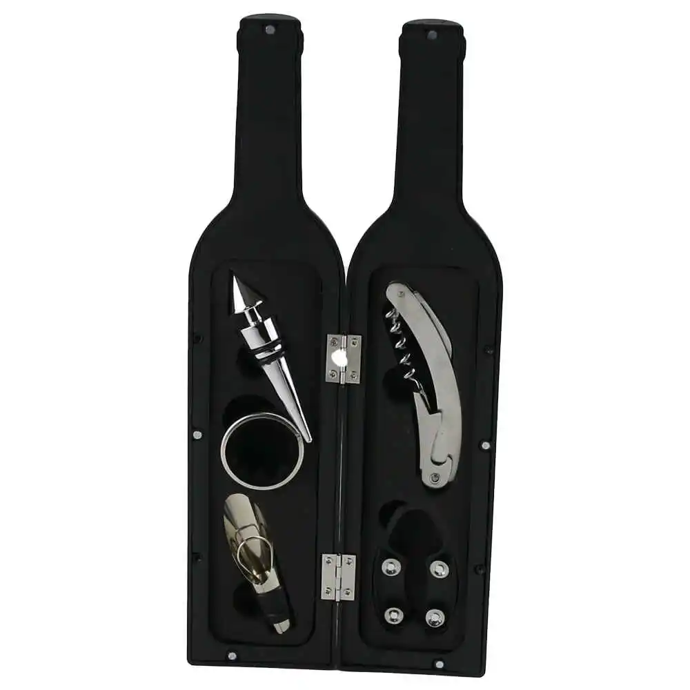 Setul contine un taietor de sigilii, un dop pentru vin, tirbuson, inel non-picurare si dispozitiv pentru turnare