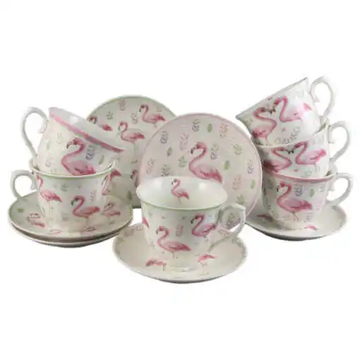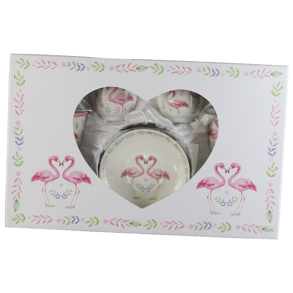 Set 6 cesti ceramica cu farfurioare 220 ml, Flamingo, cu cutie decorativa