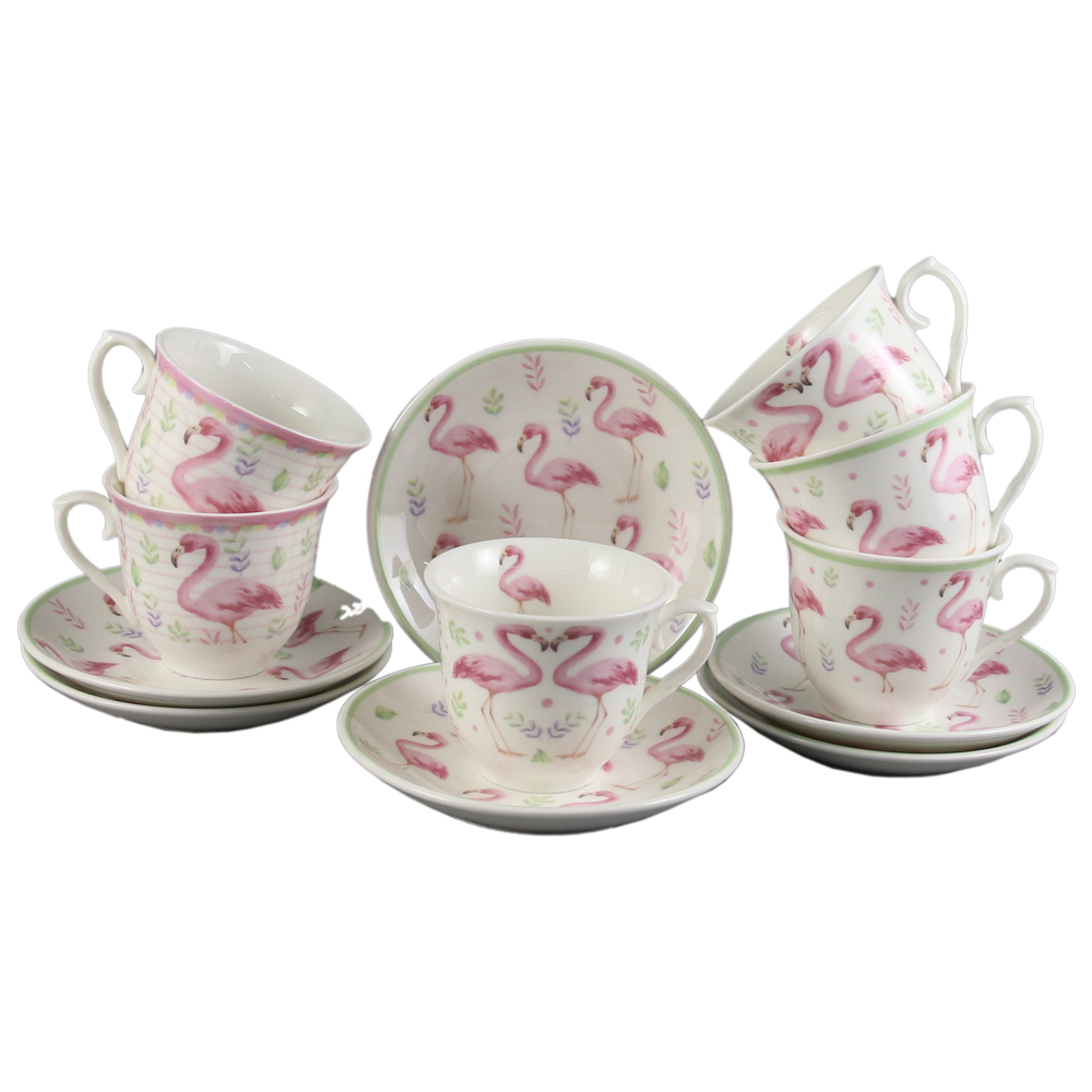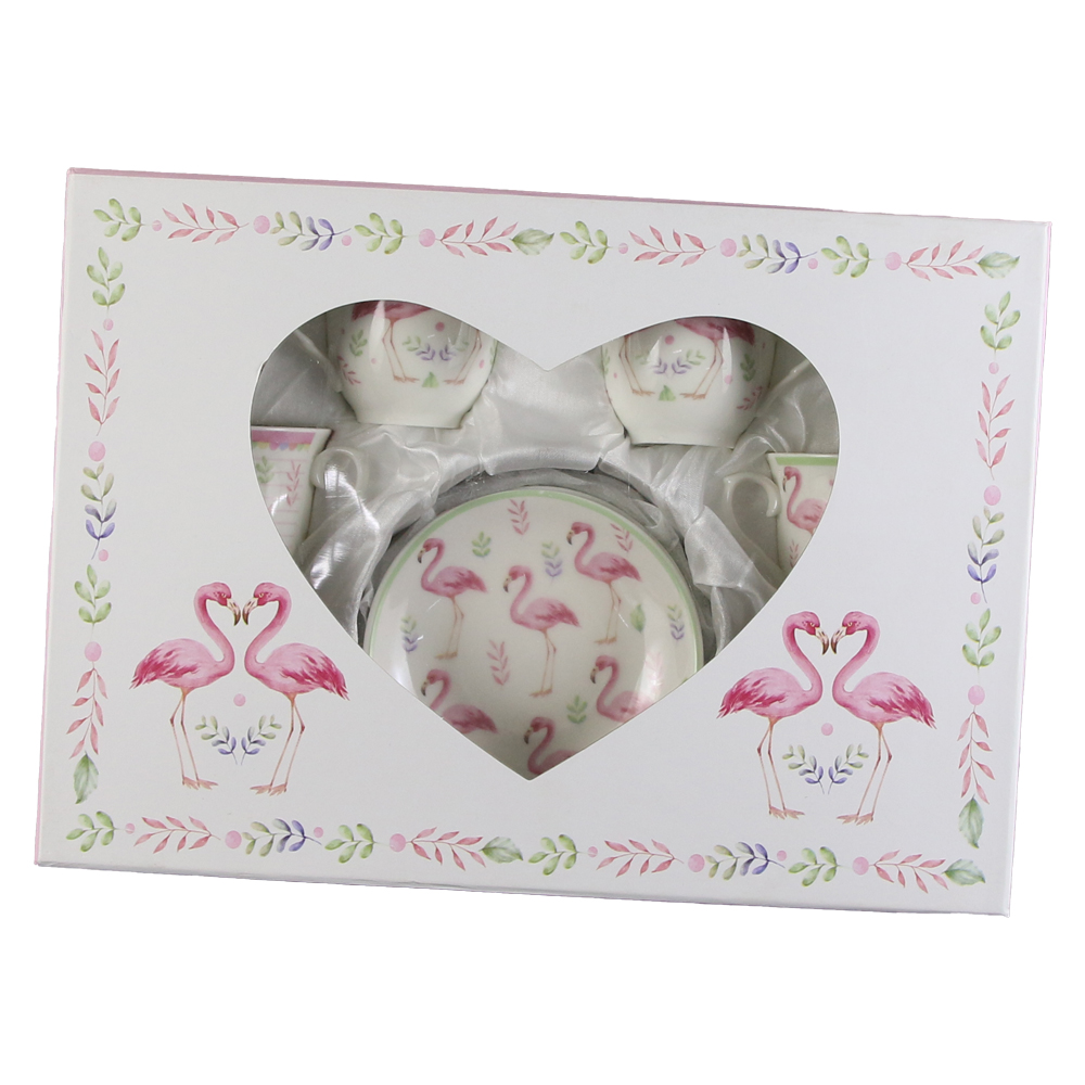 Set 6 cesti ceramica cu farfurioare 90 ml, Flamingo, cu cutie decorativa