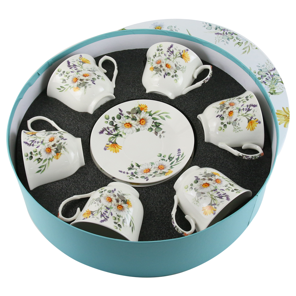 Set 6 cesti cu farfurii din portelan 250 ml „Basket of Flowers-Daisy”, in cutie decorativa