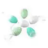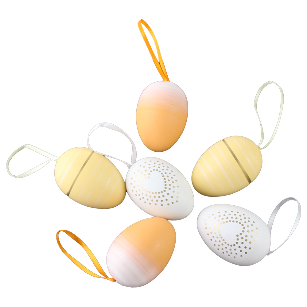 Set 6 oua din plastic 4×6 cm, albe & galbene, cu dungi si inimioare
