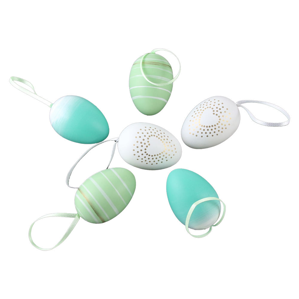 Set 6 oua din plastic 4×6 cm, albe & verzi, cu dungi si inimioare