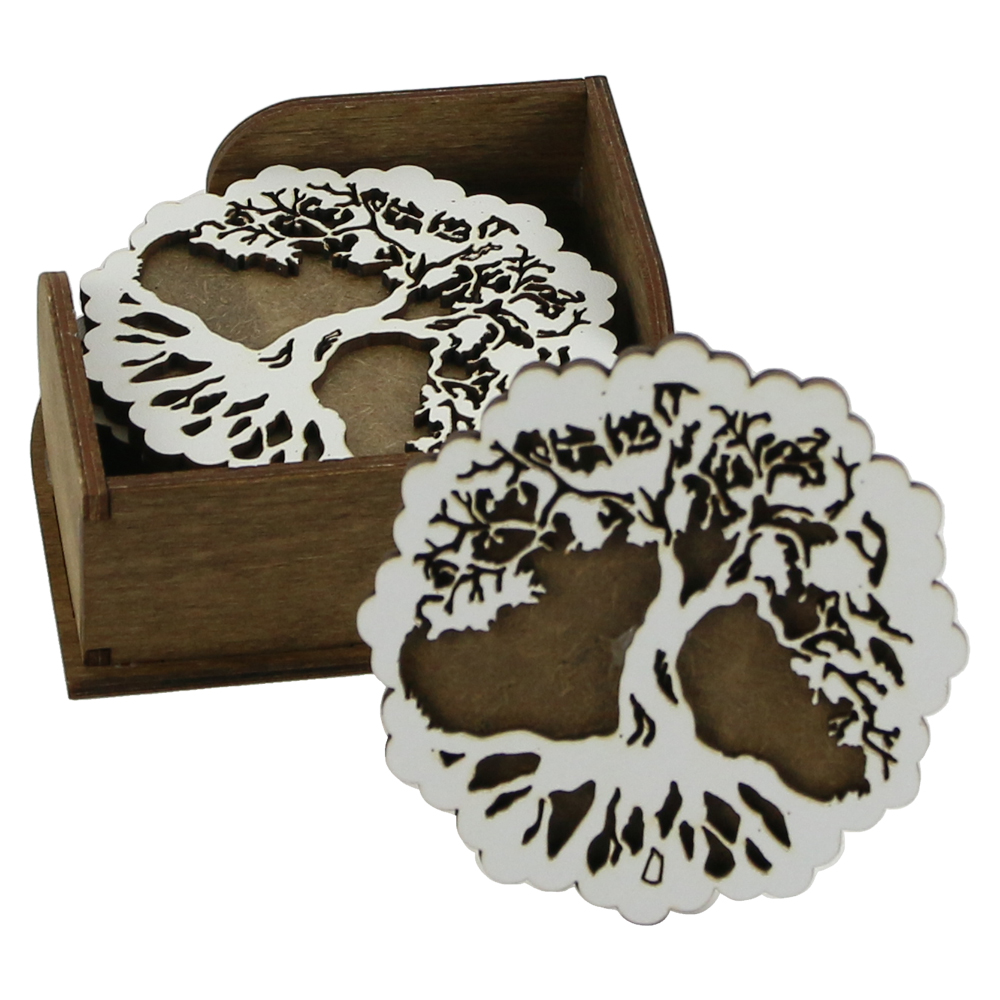 Set 6 suporturi pahare traforaj, 9 CM, cu suport, Copacul Vietii