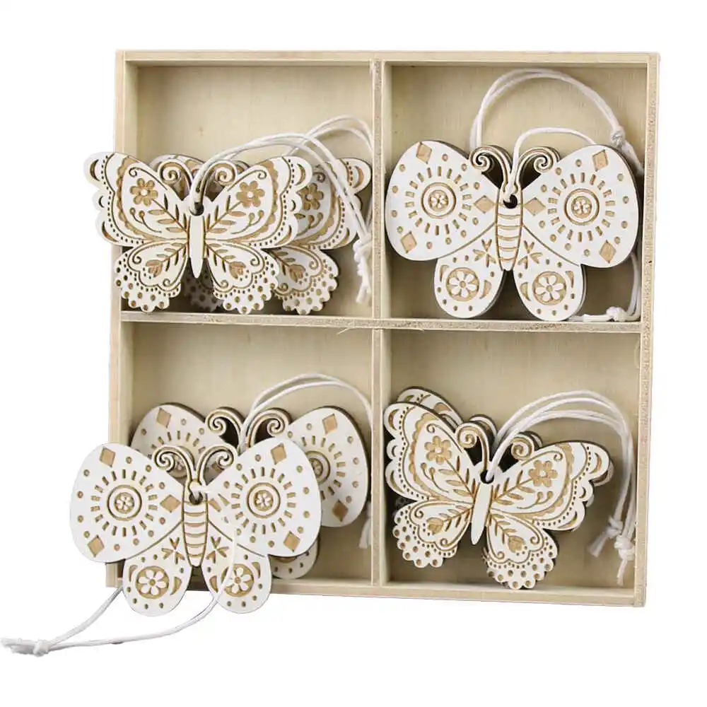 Set 8 fluturasi din lemn 6 cm, cu agatatoare