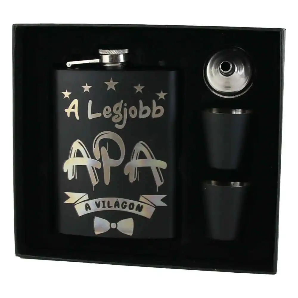 Set cadou „A legjobb Apa a vilagon”, Plosca cu palnie si 2 pahare
