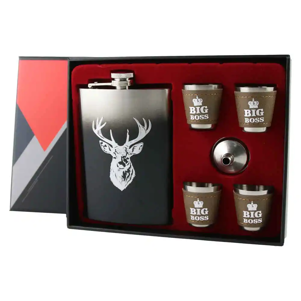Set cadou „Big Boss” Plosca cu 4 pahare si palnie, 250 ml, Cerb