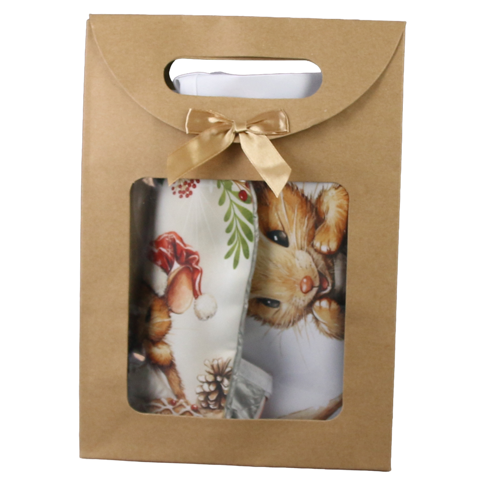 Set cadou „Boldog Karacsonyt!”, Manusa cu sort de bucatarie, Soricel + punga cadou