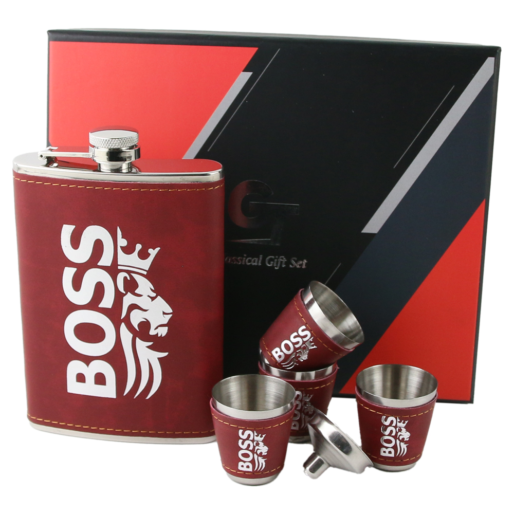 Set cadou „Big Boss” Plosca cu 4 pahare si palnie, 250 ml, Cerb